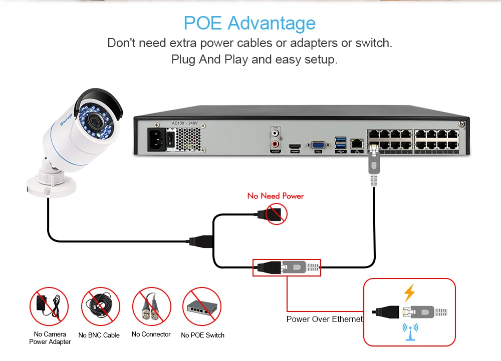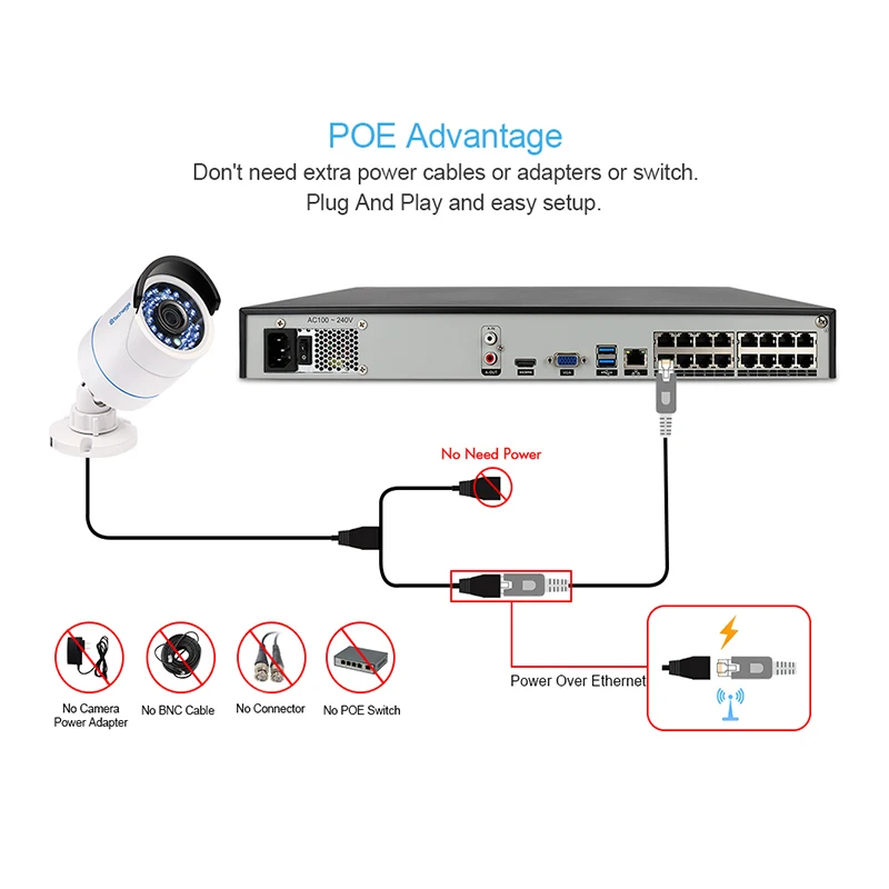 POE NVR = NVR + POE Switch , Plug And Play and easy setup.