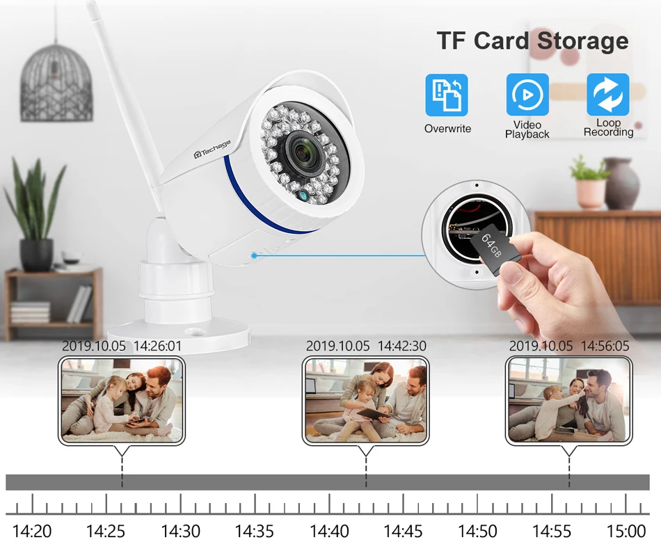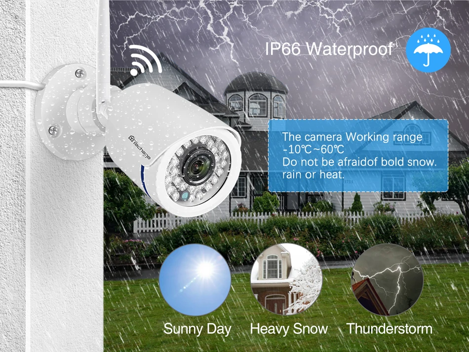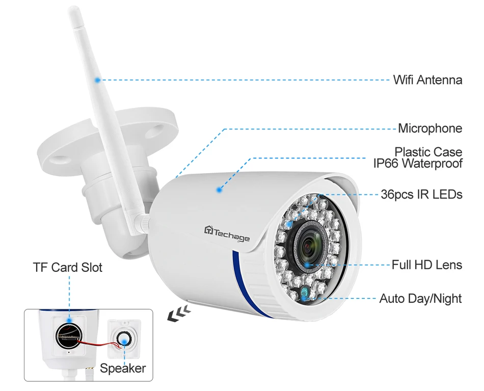 Techage 1080P WiFi IP Camera Outdoor Waterproof Wireless CCTV Camera Two Way Audio Home P2P Video Monitor With TF Card SlotProduct Features