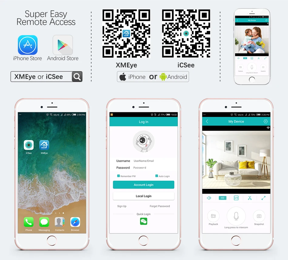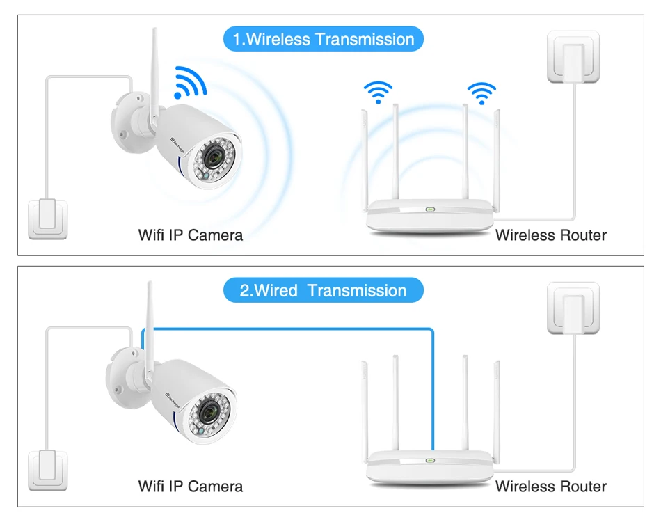 1. Support ONVIF protocol, work with third part NVR (it doesn't support view on Onvif Device Manager due to compatible issue). 2. To install the TF card, need to open the camera, find out the TF card slot on back of the camera board, contact us for instruction if you have any problem with it. 3.This cameras support connect in CMS. Only support 2.4G Network WIFI , 5G Network WIFI Not Supported!If you need power extension cable to extend this power for cameras, plese click here to buy 5m or 10m power extension cable 1080P 2.0MP High definition image, super infrared night vision When someone breaks into shooting area, the camera will make alarm sound and alarm message will be pushed to your Phone APP. Camera has built in Microphone and Speaker.Never miss a moment with your family. ABS Plastic Case IP66 Waterproof, For Outdoor / Indoor used You can playback to any specific moment of you recordings. Never let those good time slip away.TF Card 64G at max (32G / 64G TF card for Optional), record everything for you.32GB: 8-10 days, 64GB: 18-20 days Great for day or night surveillance, the Camera includes infrared LEDs with automatic IR cut filter. Our mini wireless host and IP Cameras easily fit in the palm of your hand. this you can mount them anywhere in your around your house. Share The Video With Your Relatives and Friends. Say goodbye to port forwarding and networking issues. Simply plug in your system and use the XMeye or iCsee APP to add cameras to your account. Real plug and play. According to your needs, you can choose wireless connection or network cable connection. With the free and easy to use app, you can view your security cameras secuely from virtually anywhere in the world.Connect the mobile with the wireless router ( Pealse confirm the mobile is connecting with the 2.4G WIFI, as the camera WIFI not support 5G network yet ) Q1: What are the advantages of this WiFi camera ?A1: This camera with LAN port and you can connect it with your router when there is no WiFi.Q2: I need safety and also my families . Does it provide alarm for us ?A2: This camera with motion detection function.It can Buzzer/pop alarm message/push email when detect motion action.Q3: How about the View angle.A3: The camera lens is 3.6mm and view angle is about 70 degrees;Q4: I hope I can record with this camera .Do I need a TF card ? how dose it work ?A4: Before recording .You need insert a TF card.it support 64Gb MAX . Recording time: 16Gb : 2-3days 32Gb :4-6days 64Gb:14-16daysA5: Why camera can not read the new TF CARD?Q5: TF Card can be formated on the Computer to FAT 32 form