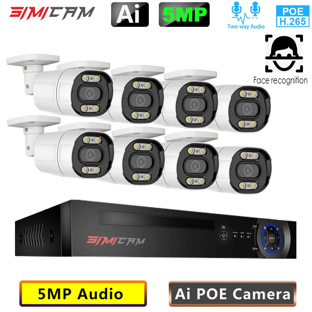 Best Price Comparison With Simicam8CH 5MP POE NVR Kit 2K HD CCTV Security System Two Way Audio AI IP Camera Outdoor P2P Video Audio Surveillance Camera Set