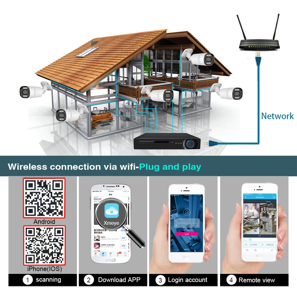 Easy setting , just 4 steps for mobile phone viewing (Android and iPhone iOS)