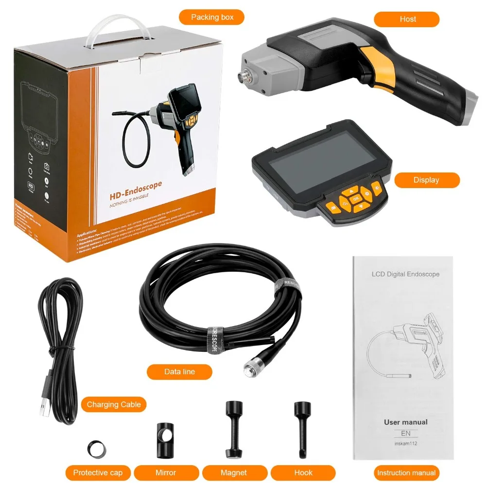 1*4.3-inch LCD Industrial Endoscope1* Snake Probe1*USB Data Cable1*User Mannual