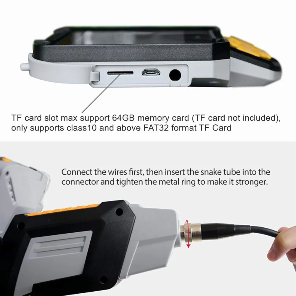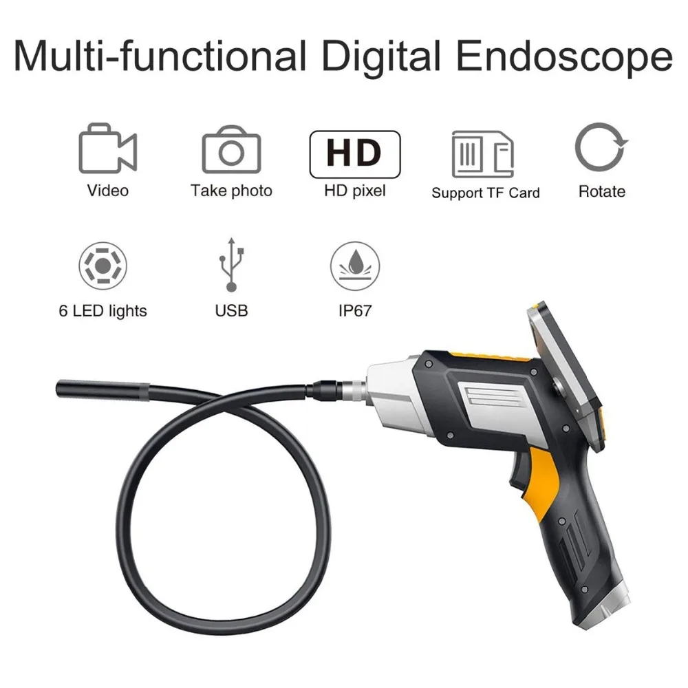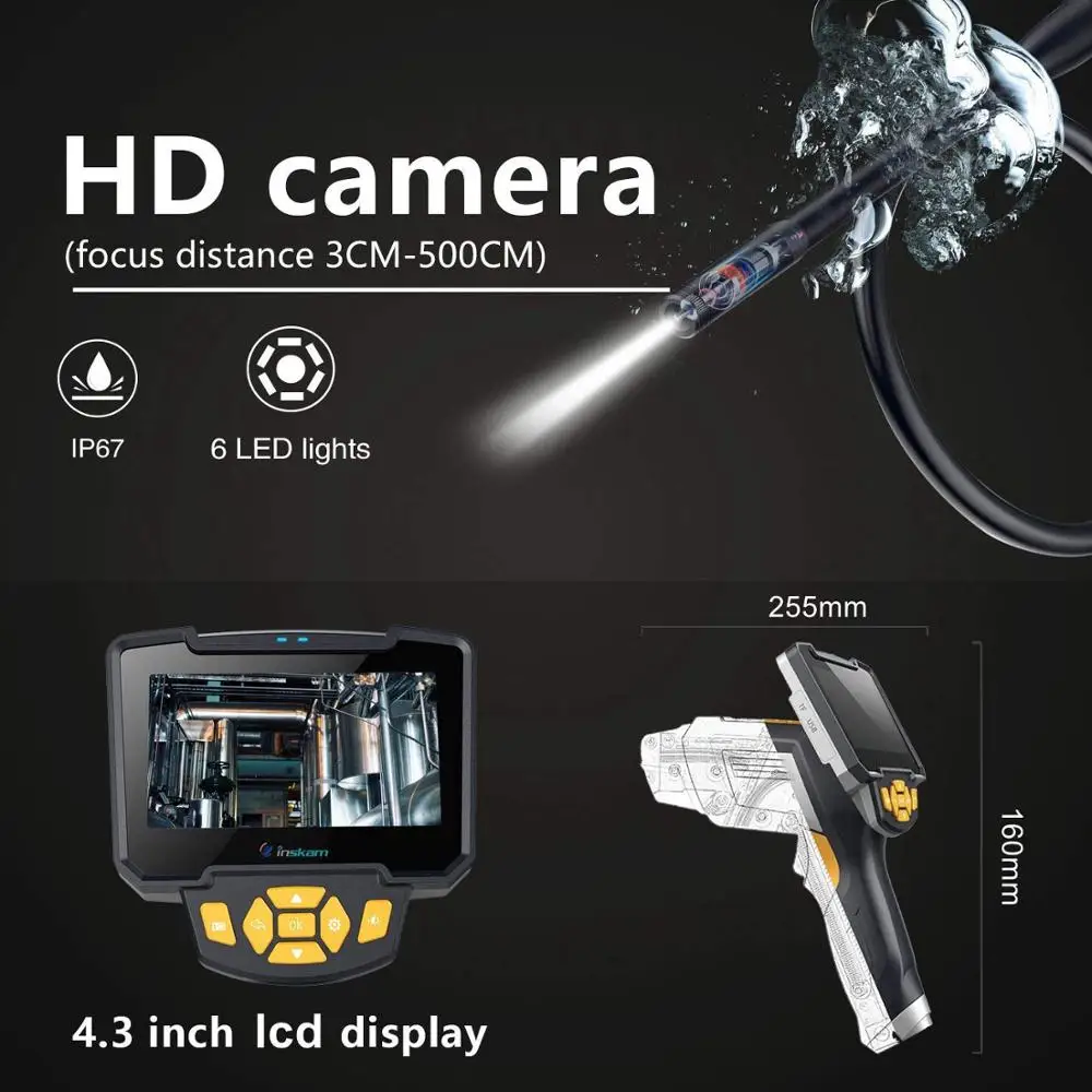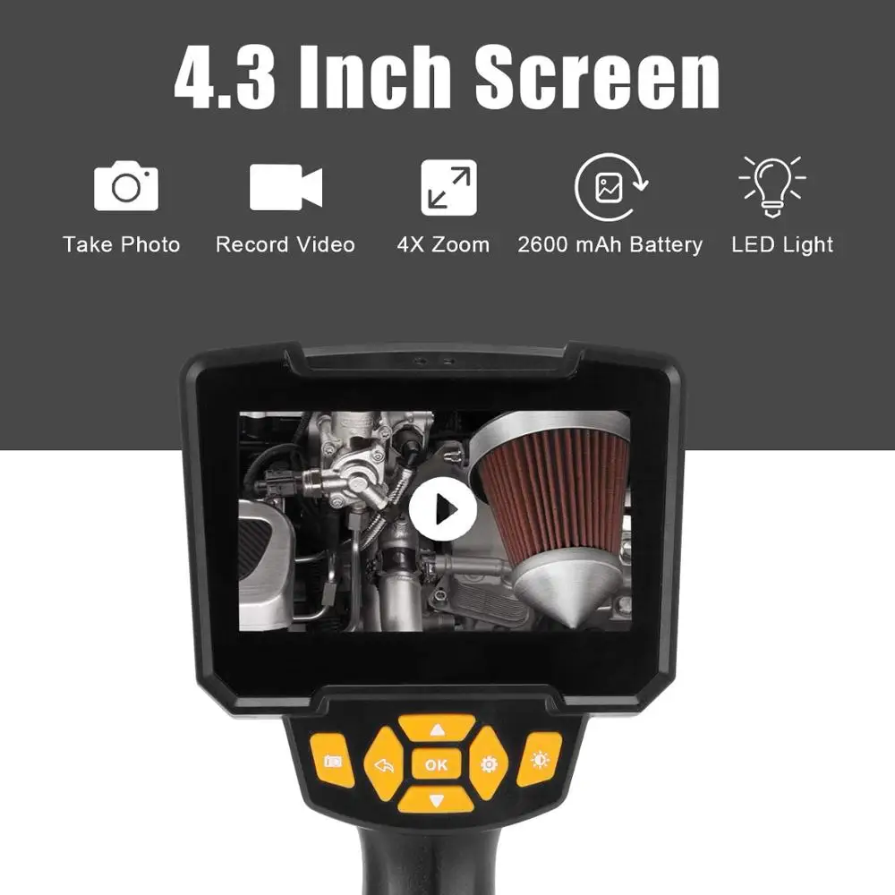 Shipbuilding industry: used to inspect boilers,steam turbines, diesel engines, pipelines electronics, Electronics industry: used to confirm the wiring status of the product, check the working condition of the machine, etcIndustrial machinery: used to check for engine scars or wear, gearboxes, hydraulic systems, greatly reducing downtimeTubular/Water Pipe Cleaning: It helps to clean,rust, corrosion, dust and crack after the pipe is inspected8mm Snake Tube / Hard Tube Endoscope Inspection Camera8mm diameter make it easier to extend the field of view to a narrower space.Such as car spark plugs, wall drilling, rusty water pipes,violin f hole etc.Which flexes and retains its shape better than any other cheap hard wire.Making it easier to get your field where cann’t be seen directly with your eyes.Mini Endoscope Camera with 4.3inch LCD Screen