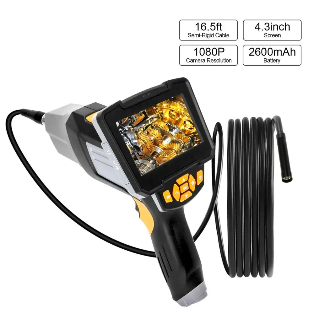 1.Versatile Borescope Camera: Featured with 8mm(0.31inch) camera diameter, this inspection camera can directly access to narrow dark places for nondestructive testing, such as pipe clogs, behind the wall inspection, vehicle maintenance,engine checking,carbon deposition,cylinder checking Underwater Camera, Waterproof Micro Cameras, Car Detector, Channel Pipeline Detector, Search and Rescue, Criminal and Custom Detectors, Archaeological Discovery, PCB Detection, Home Care, Aerospace, Nursing and tractor industries, petroleum drilling industries, structures,etc.2.HD 1080P Endoscope Camera:With HD 1080P camera sensor, this industrial borescope allows you to capture image or record video. Designed with 6 adjustable LED lights, this inspection camera is perfect for all kinds of dark environment like low-light or dark area, damp or wet area etc.3.4.3 Inch LCD Screen: Compared with wireless endoscope camera, You can view inspection image immediately on the 4.3inch LCD screen while this industrial endoscope is powered on. real -time monitor, plug and play, no need to install App or connect to your smartphone through Wifi. No more worrying about lose connection constantly.4.Waterproof Probe and Tube:The waterproof level of the camera and probe is up to IP67. 5 Meter Semi-Rigid Tube and a probe with 6 adjustable LED lights. In addition, there is also an LED flashlight. These give you the best Use experience.5.Semi-Rigid Cable:The semi-rigid cable is great for allowing more control of the direction of the inspection camera. It can be bend and hold it’s shape to access a wide variety of confined places.6.Long Working Time: with large capacity 2600mAh rechargeable Lithium-Ion battery, Antscope endoscope can work up to 3 hours after fully charged, unlike some other endoscopes only working a few minutes.Industrial Endoscope Application: