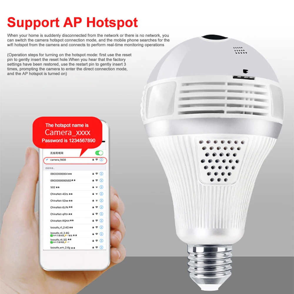 The best product you are looking for is "Wifi Panorama Camera Security Lamp Panoramic Bulb CCTV Video Wireless Ip Camera Surveillance Fisheye HD Camera". This product is available and ready to be purchased. Get attractive discounts every time you shop in our store (aliexpress.com). Aliexpress also provides a coupon of $ 3 for the first buyer to shop there. don't forget to bookmark our store page so you can go shopping again anytime..