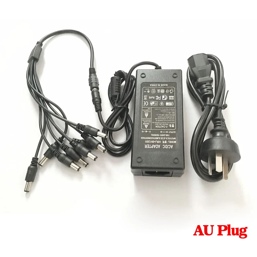 | NINIVISION 12V 5A 8CH Power Supply CCTV Camera Power Box 8 Port DC+Pigtail COAT DC 12V Power Adapter |