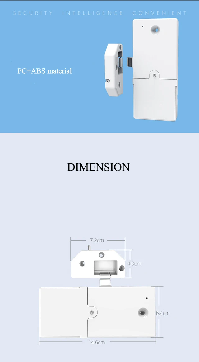 Secure, keyless entry for your smart home. Lock and unlock your cabinets and drawers. No matter how thick the board is, the bluetooth signal will not be affected. The maximum distance is 10 meters. App Smart Lock - Bluetooth smart lock can be key authorized by the APP, compatible with Android and IOS, you can set the authorization time, no limit on the number of authorized, Grant access for a few weeks, a few hours, a few minutes. It’s up to you. Low Power Alarm - Each time you unlock the APP, it will show the power, and the low battery will alarm! It is also possible to unlock automatically when the power is too low in the APP! Easy to Instal - This bluetooth lock is no need to drill holes, never worry about destroy your Cabinet or drawer Locks automatically as you leave and unlocks when you arrive Note: Do not close the drawer door without the battery installed. Attention : we have two type for this lock, two type have different dimension and different APP, so please choose carefully. Type A Introduction Specifications: 1.Mobile phone Bluetooth 0.1S quick unlock 2.Mobile authorization, key sharing