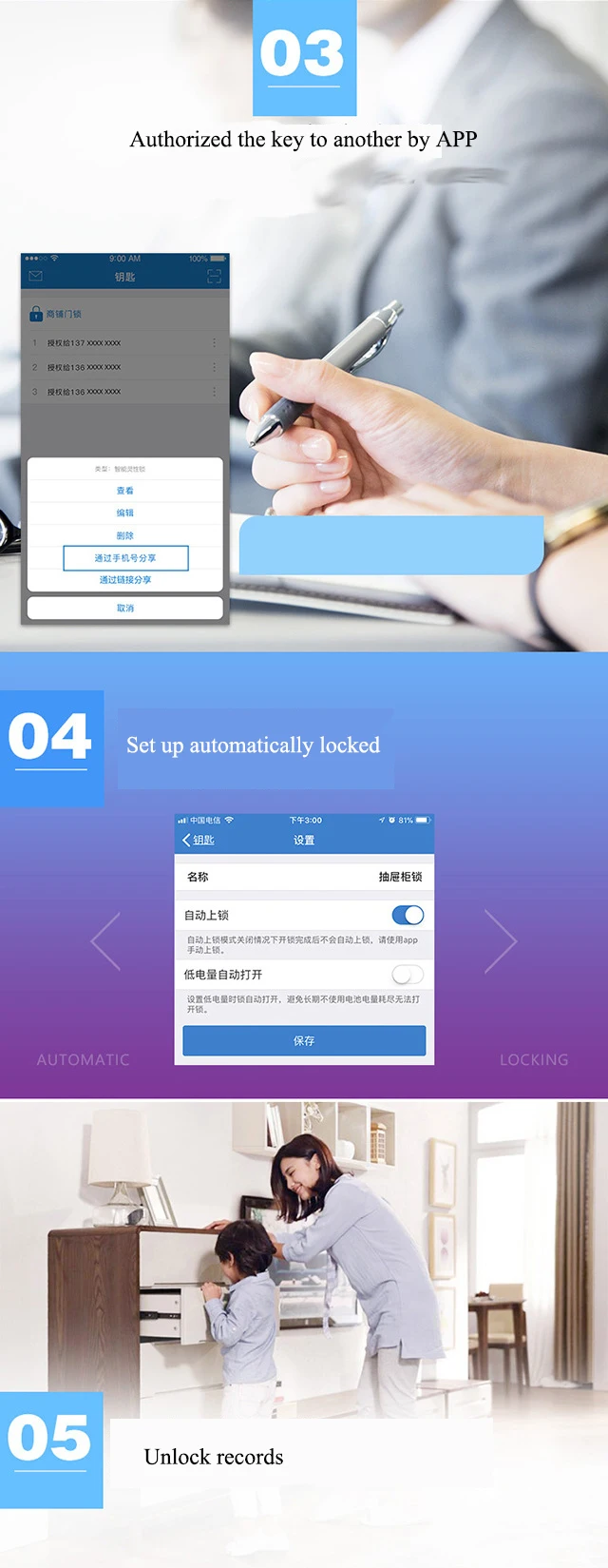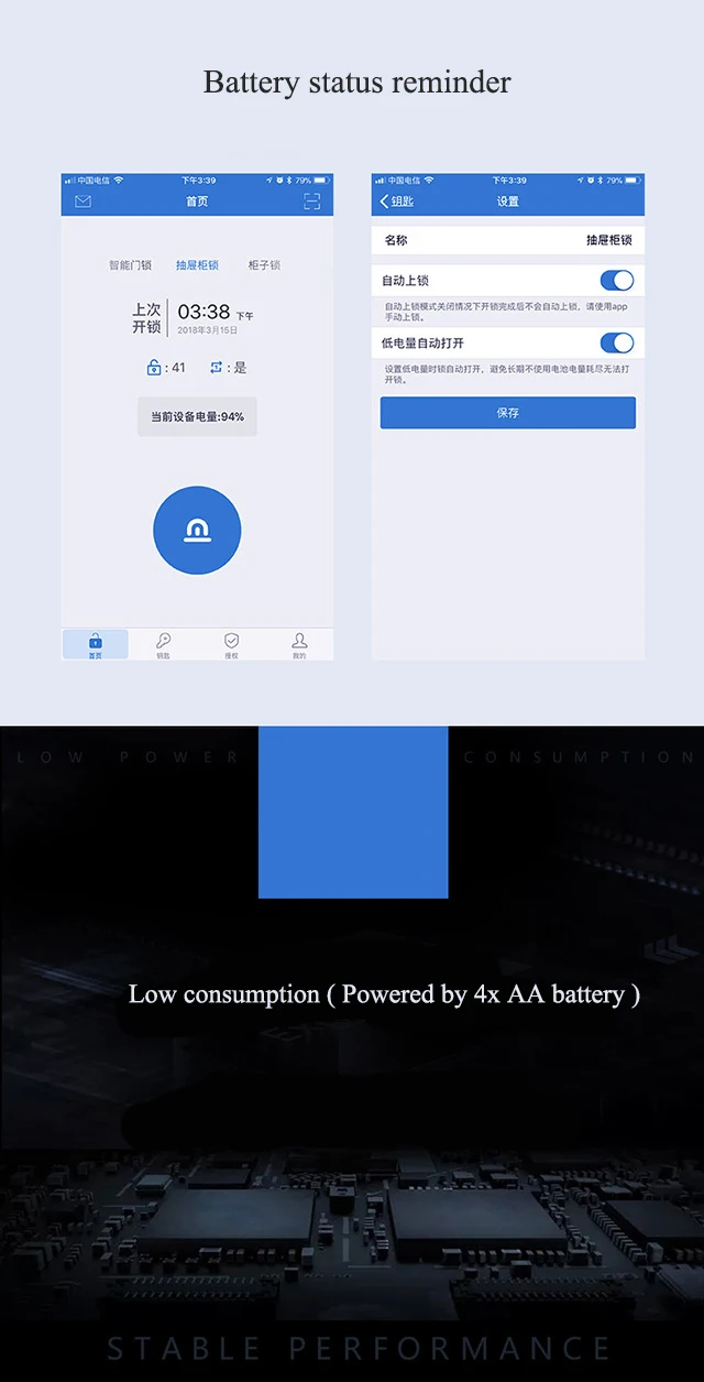 4.Automatic unlocking when battery power is low