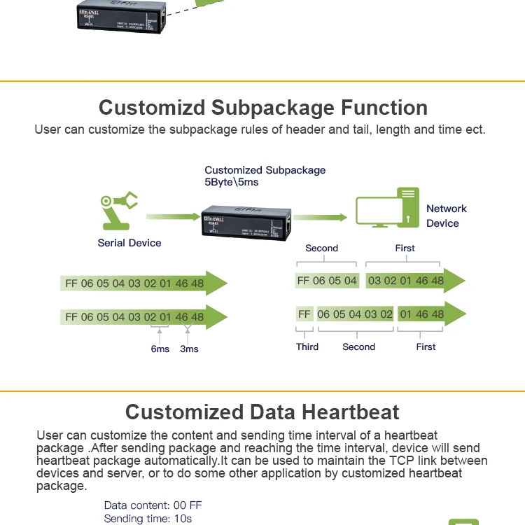 - Support TCP/UDP/Telnet /Modbus TCP Protocol