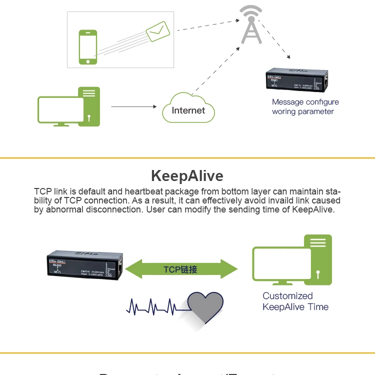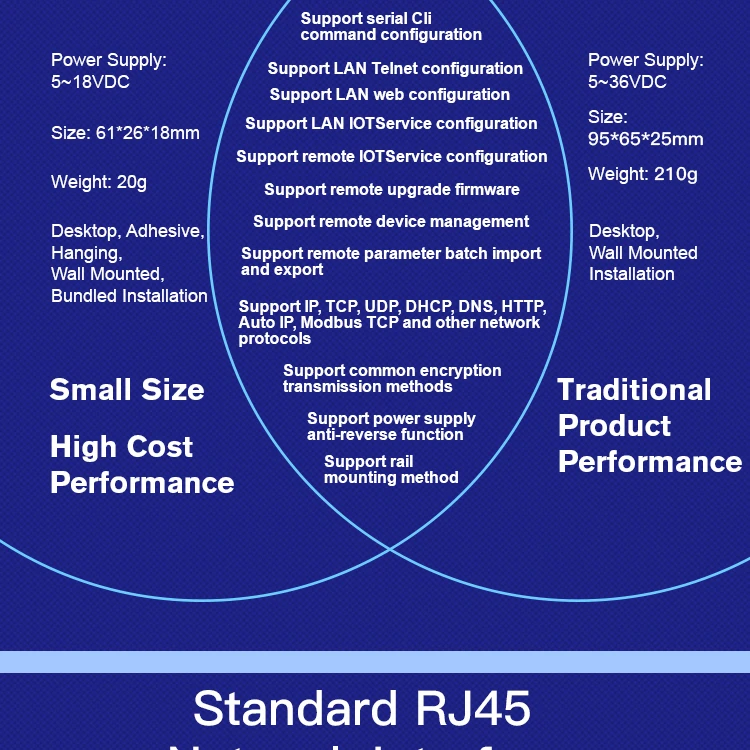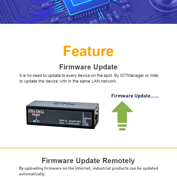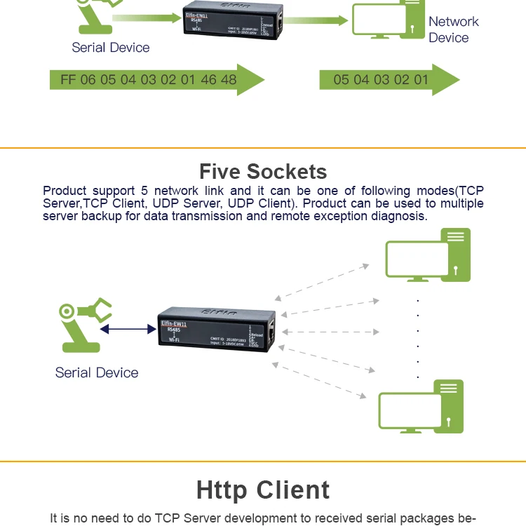 - Support RS485 to Ethernet/Wi-Fi Conversion, Serial Speed Upto 460800 bps