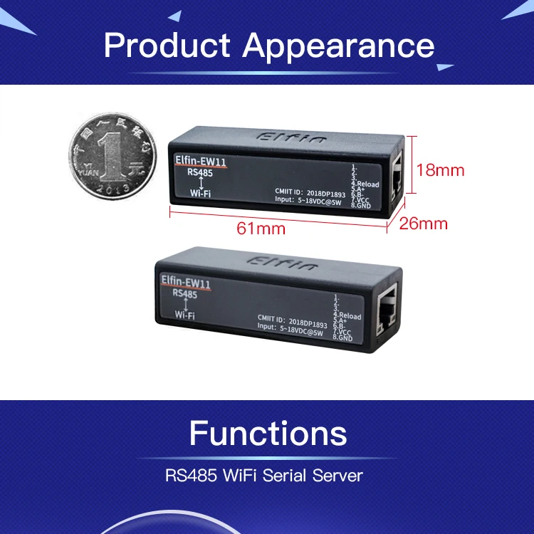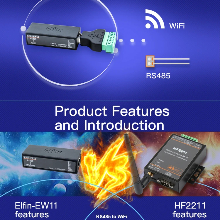 | Serial Port RS485 to WiFi Device Server Module Elfin-EW11 Support TCP/IP Telnet Modbus TCP Protocol Data Transfer via WiFi |