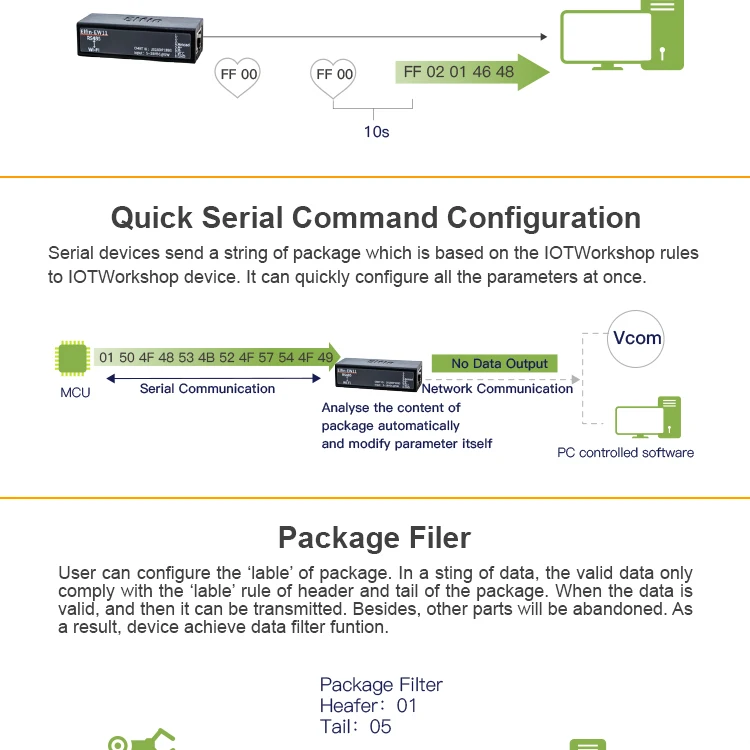 Elfin-EW1X serial server for data transfer via Wi-Fi, which makes the data transformation very simple.
