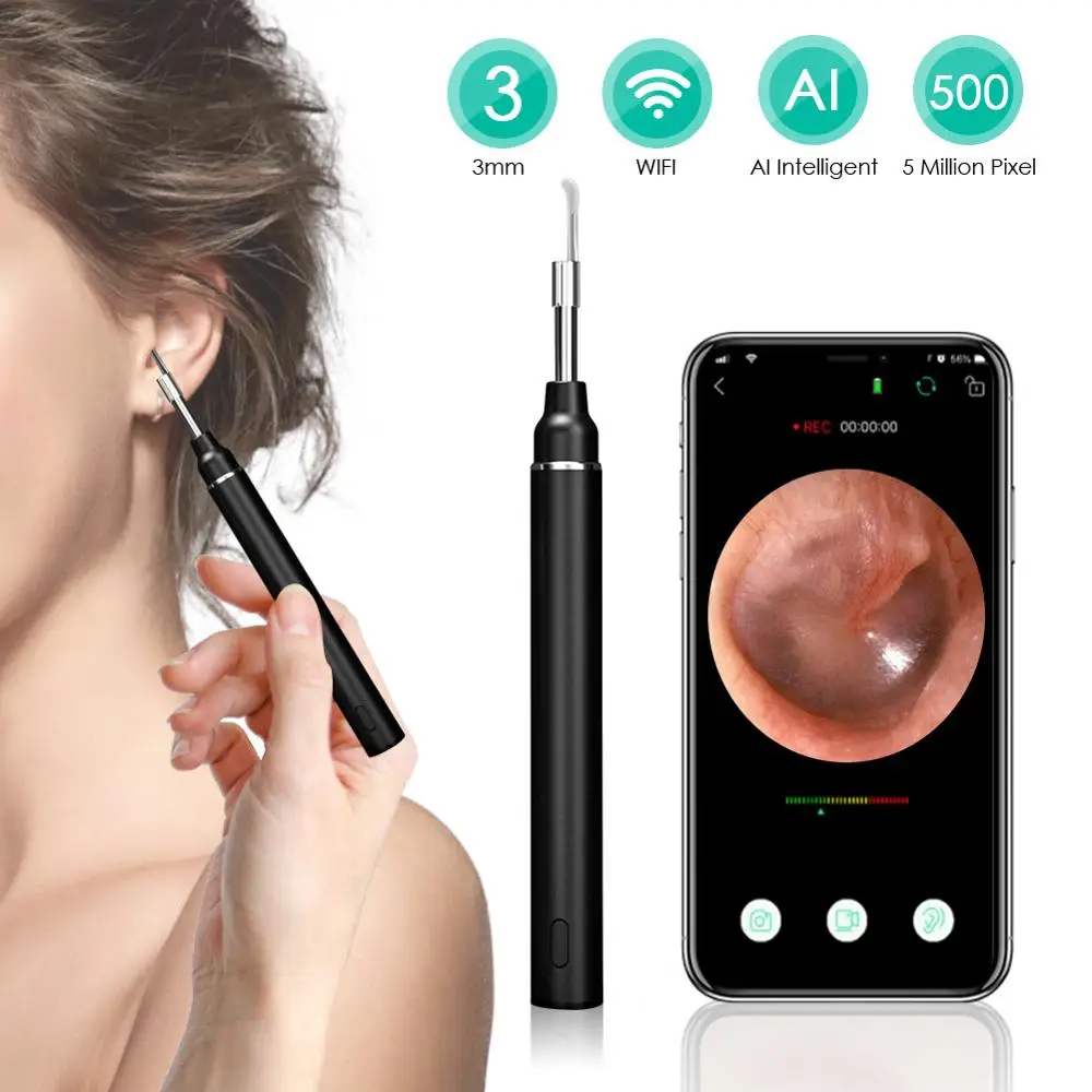 New 5MP Wifi Otoscope Camera 3.9mm Ear Cleaner Nasal Endoscope with Ear Wax Remover 6-Axis Gyroscope for Iphone Android Phone