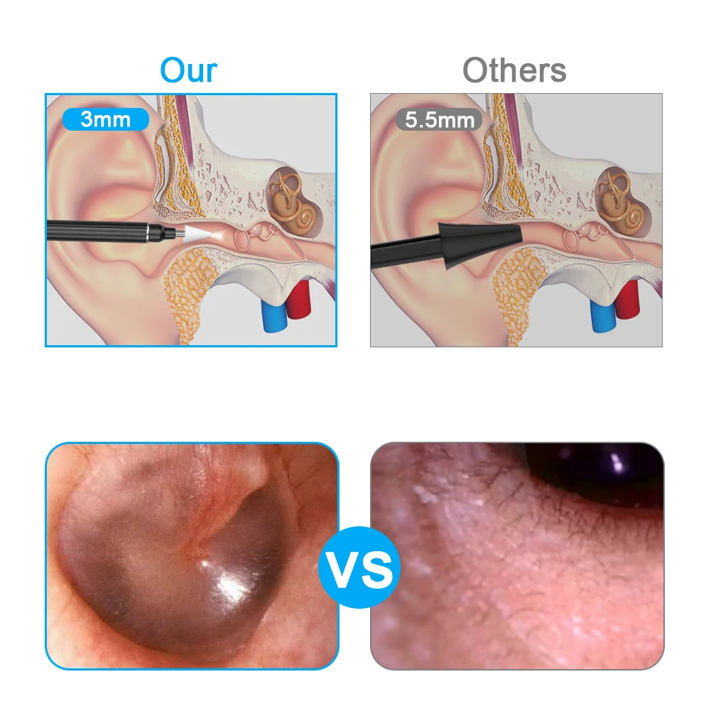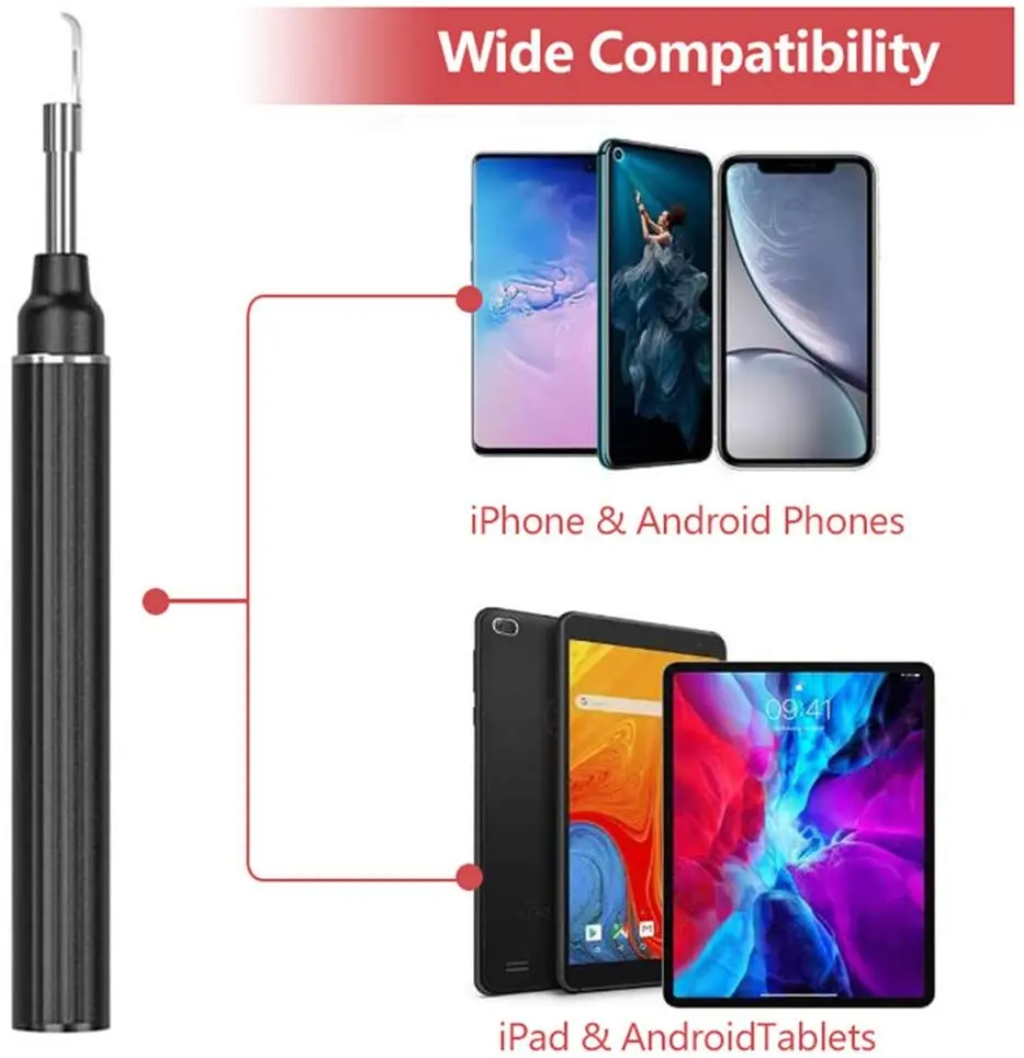 Upgraded Version Ear Otoscope: It is latest version wireless ear otoscope that can capture sharper image, reduce power dissipation and strengthen the signal.Easy Connection & Quick Operation: WiFi ear otoscope is easy to connect with Phone., Download and install the APP on your device, turn on the digital ear endscope, next launch phone WLAN and connect with device’s Wi-Fi signal, next open app and you can live streaming video on phone. Compatible with IOS, AndroidSafe and High definition: The endoscope camera size is 3.9mm and can be used with adults and children. The ear endoscope camera featured with non-heating chip, free from being scald, and equipped with adjustable 6pcs led lights, which greatly enhances the brightness and sharpness of the image in ear canal and remove earwax more completely and safely.Multi-Purpose Use: WiFi endscope camera is convenient for daily inspection of ear, nose, mouth, throat and other health conditions. You can take care of your family's or friend's health, even your pets. Wireless endoscope is an essential tool for each family, pet hospital etc.Ear Scope Camera Specifications: