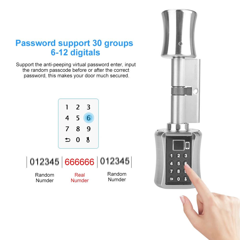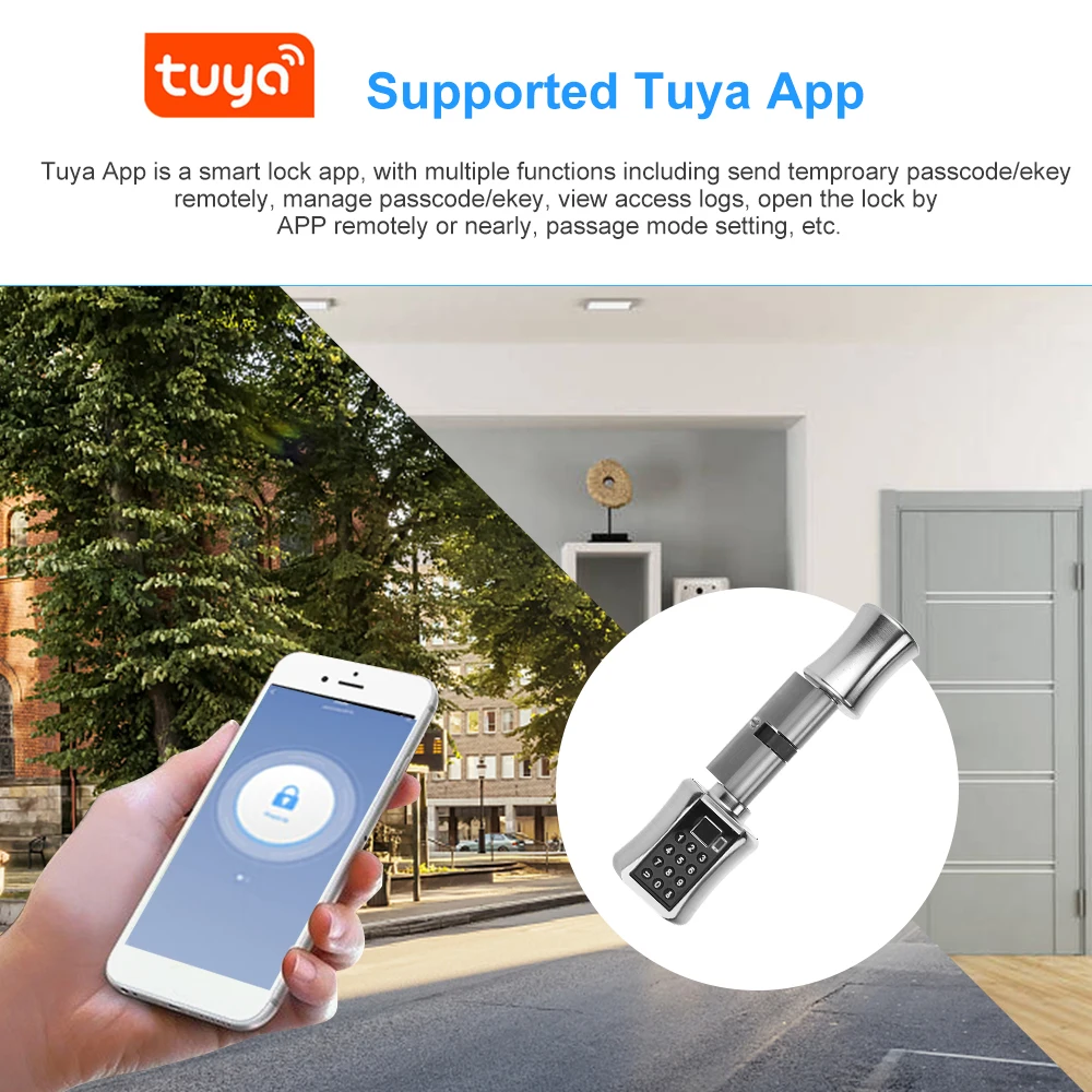 Smart Cylinder Lock Tuya APP Keyless Electronic Fingerprint Door Lock BT Wifi Digital Password Lock Code Anti-theft Door Lock