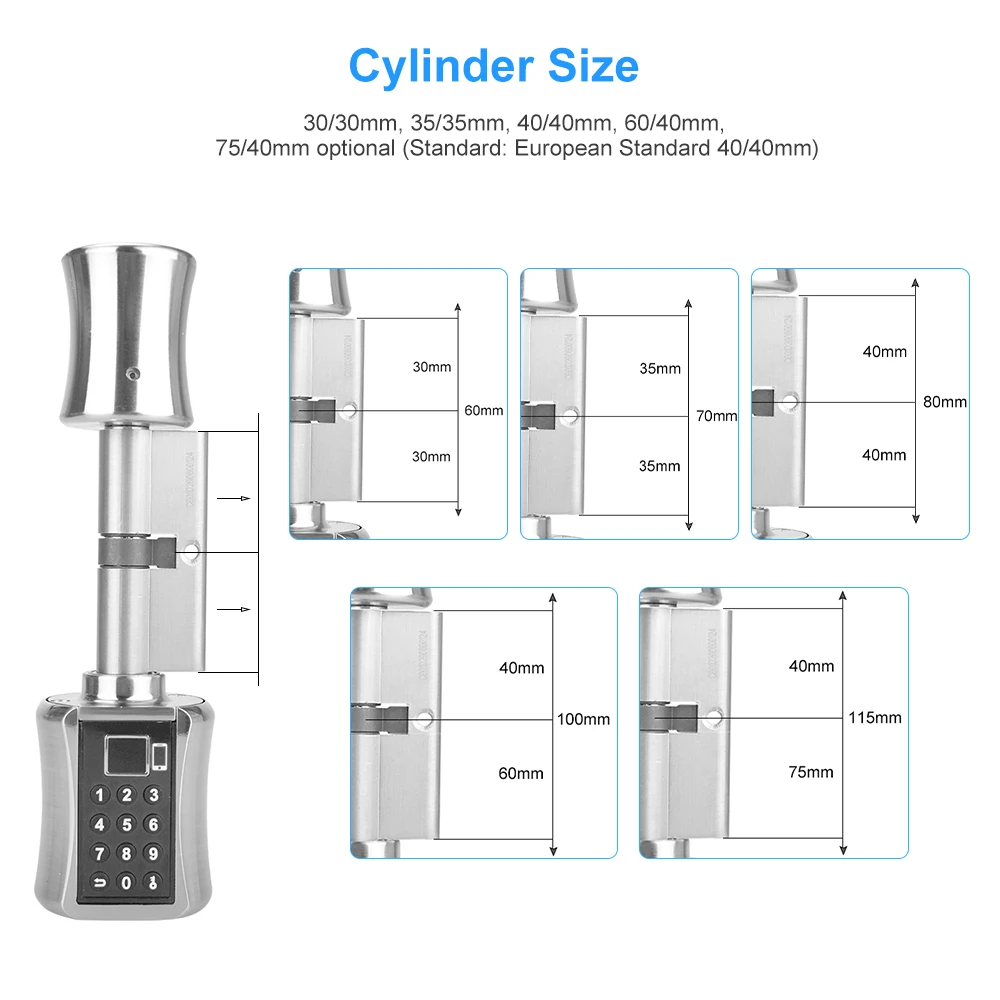 * Cylinder Size: 30/30mm, 35/35mm, 40/40mm, 60/40mm, 75/40mm optional (Standard: European Standard 40/40mm)