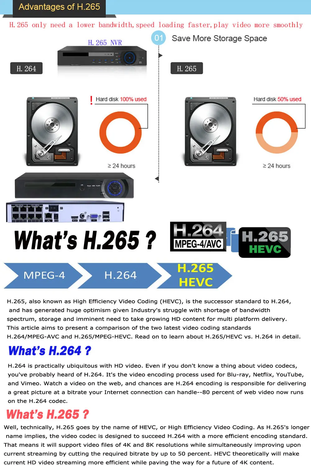 Main Features 1pcs POE NVR=1pcs normal NVR+1pcs POE Switch *Video Compression:H.264/H.265 *Video Input Mode:4CH 5MP/4MP or 8CH 1080P *Video Output:VGA/HDMI *Plug and play,Remote view through PC/mobile anytime anywhere. *With motion detection,email alerts functions. *Support DHCP,FTP,DNS,DDNS.,etc network service. *1 HDD port (HDD is not included) *Support multi languages:English,Russian,French,Spanish.,etc *Support Onvif 8CH POE NVR Packing List: 1*8CH POE NVR 1*Remote Control 1*USB Mouse 1*user manual 1*48V/3A Power Supply ( EU/US/UK/AU Optional )
