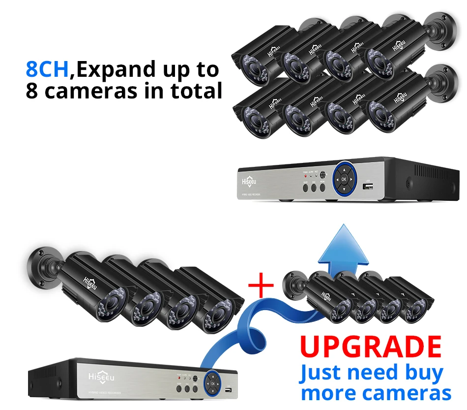 | Hiseeu 8CH 5.0MP Security Camera System Set 4pcs 720P 1080P 1920P AHD Waterproof street Camera Outdoor Video Surveillance Kit |