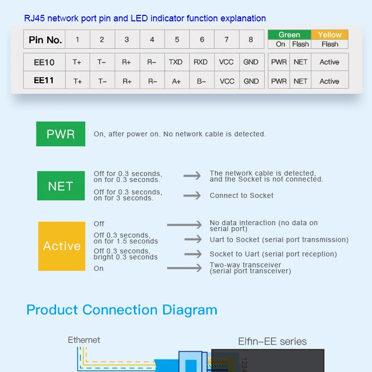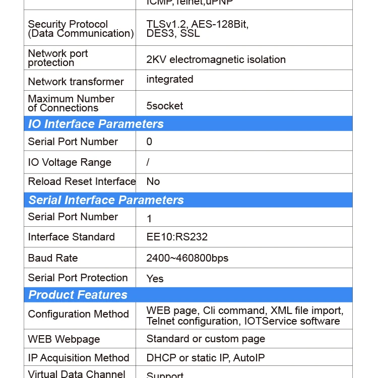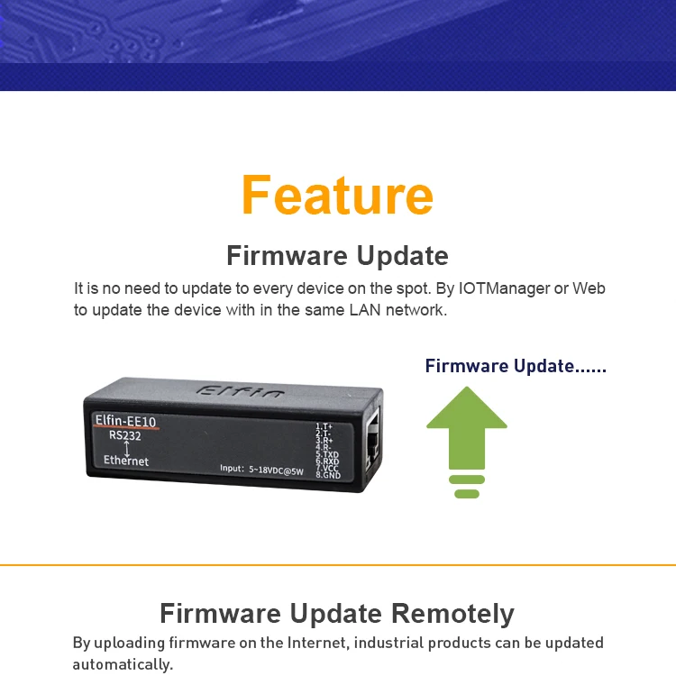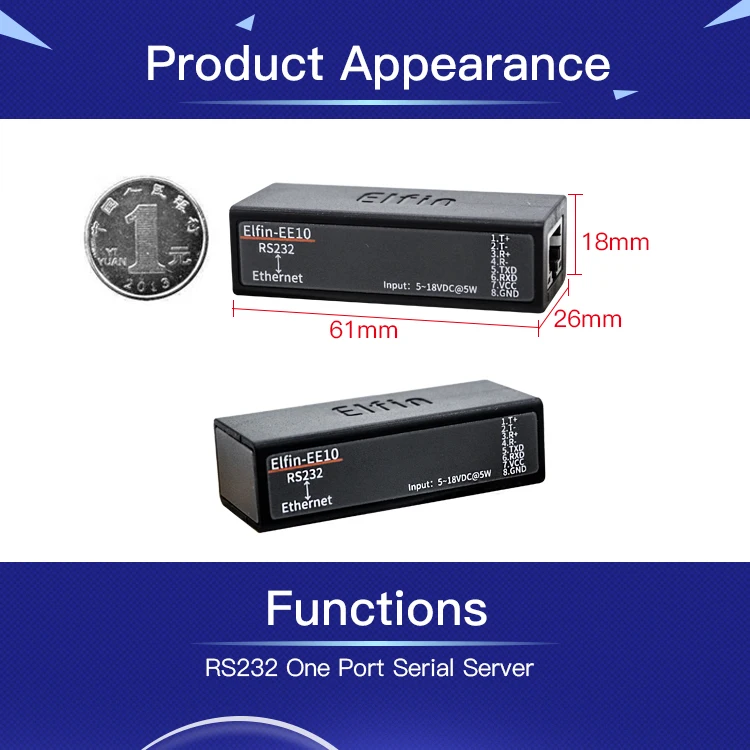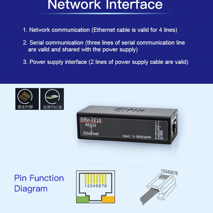 | Serial Port RS232 To Ethernet Device Server Converter IOT Elfin-EE10 Support TCP/IP Telnet Modbus TCP Protocol |