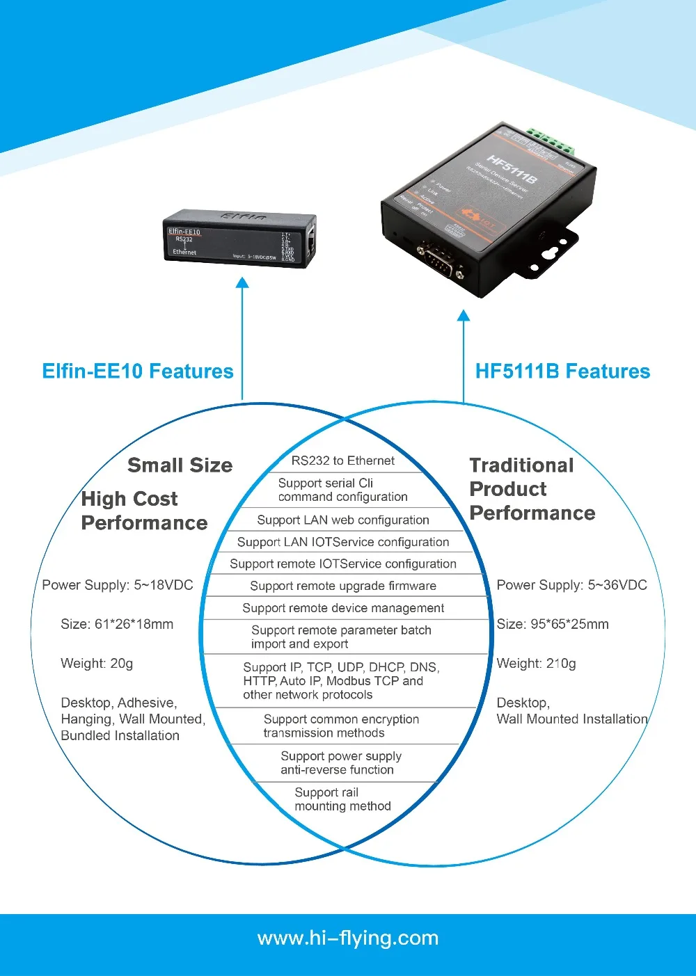 - Support 10/100M Ethernet Auto-Negotiation