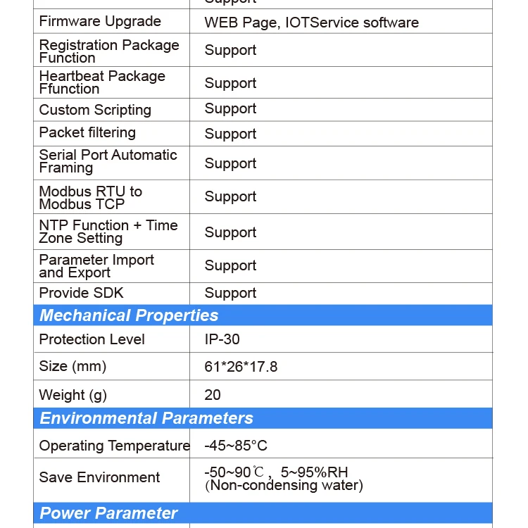 - Support Webpage Easy Configuration or PC IOTService Tool
