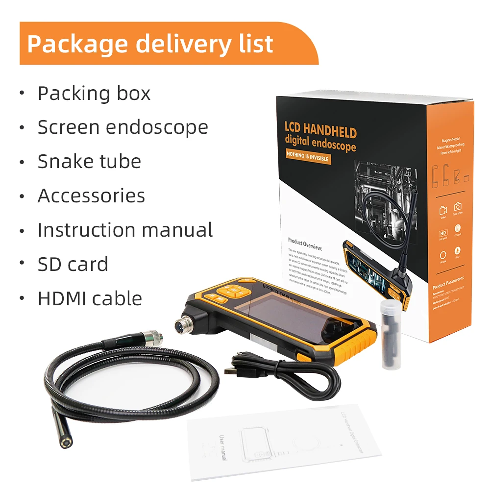1 * Handheld Endoscope 1 * Tube 1 * USB cable 1 * User ManualCustomer questions & answers