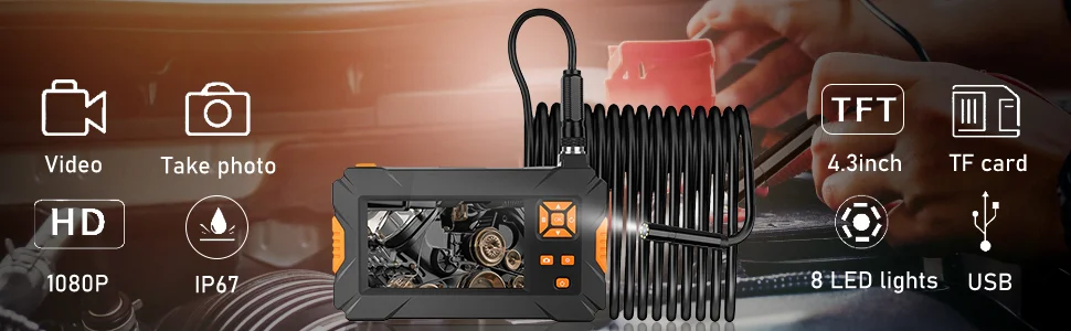 The best product you are looking for is "Dual Lens Endoscope 1080P HD Video Borescope 8mm Industrial Handheld Inspection Flexible Snake Camera with 4.3 Inch LCD Screen". This product is available and ready to be purchased. Get attractive discounts every time you shop in our store (aliexpress.com). Aliexpress also provides a coupon of $ 3 for the first buyer to shop there. don't forget to bookmark our store page so you can go shopping again anytime..