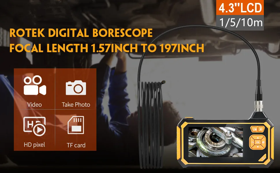 Household endoscope is ideal for automotive, HVAC,pipe, plumbing and house construction repair and maintenance. With a 4.3inch LCD screen and semi-rigid waterproof probe camera, users can view the image immediately when it is powered on. Do not require phone to download any driver software, no more worrying about smudging your smartphone.