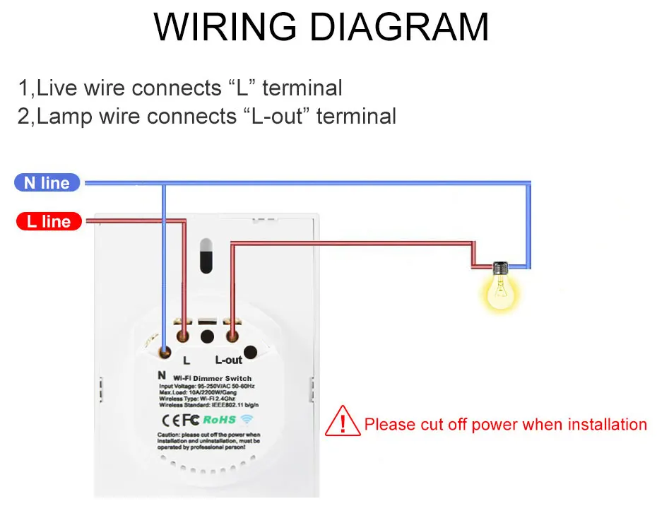 1. Neutral wire is required;2. Check your flush-mounted box szie fits or not before purchasing;3. It works with dimmable led bulb only, no matter non-dimmable led bulb or Incandescent bulb. Works with Alexa/Google Home/IFTTT