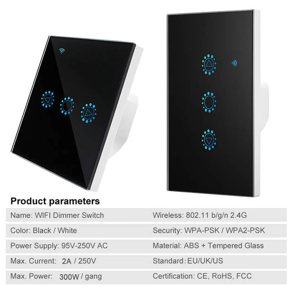 AC 100-240V voltage, support maximum power of 300W. Dim your lights with wifi dimmer switch to save more electricity and extend bulb life.