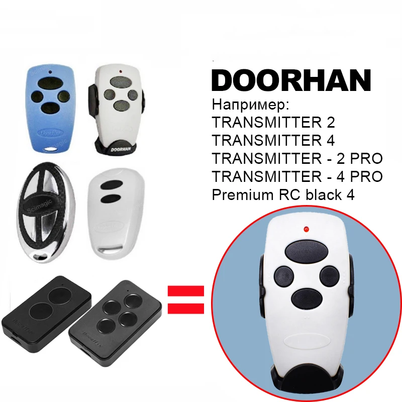 Suitable for all DOORHAN models !For example:DOORHAN TRANSMITTER 2DOORHAN TRANSMITTER 4DOORHAN TRANSMITTER -2 PRODOORHAN TRANSMITTER -4 PRODOORHAN Premium RC black 4kindly note , our remote is the COMPATIBLE / REPLACEMENT /CLONE remote , not the original one.