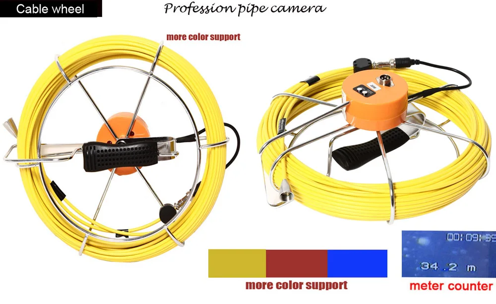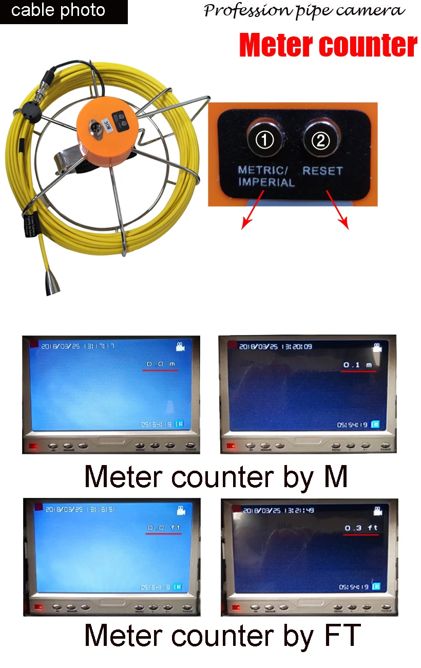 2. The one with meter counter can show distance of cable length on the monitor. The one no meter counter can not show distance of cable length.4. This one with 9 pcs bright white LED, brightness of LED is adjustable.12 pcs super bright illuminated LEDscamera head is 23mmcable is 5mmAC & Battery operatedWaterproofFor sewer drain pipe & vent inspection!Hot sell in Rusia,German,Poland,Turkey,Netherlands,Czech ,Saudi Arabia, Israel, Brizil,Chile.etc market