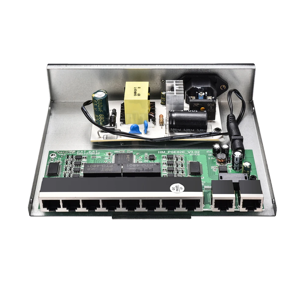 This is a 48V standard POE switch, designed and developed independently by SSC Tech to meet the needs of network power supply. It adopts the latest high-speed Ethernet switching chip, ultra-high backplane bandwidth design, and has extremely fast data processing capabilities to improve smooth data transmission performance ,With 10 power supply network ports, 2 RJ45/uplink ports. Among them, all RJ45 ports support network cable power supply. it's suitable for Hikvision,DAHUA and other brands with IEEE802.333af/at PoE Powered Devices(PD)