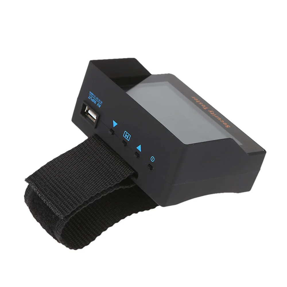 Note: Only suitable for analog camera test. This security tester is designed for testing the surveillance camera. The security tester can be attached to the surveillance camera in site. Additionally, it could be used as a power supply of 12V temporarily. The wrist strap design is humanized for convenient use.